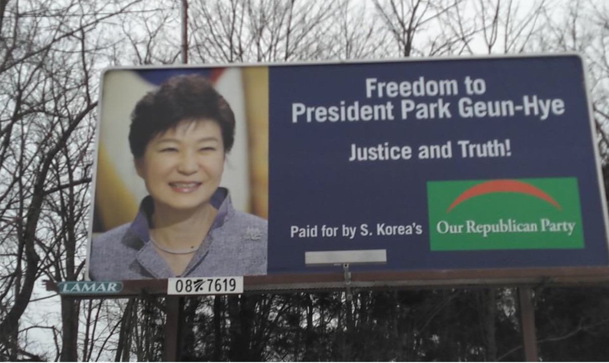 2¿ù 10ÀÏ(¼ö, Çѱ¹½Ã°£ ±âÁØ )¹Ì±¹¿¡ ¹Ú±ÙÇý ´ëÅë·É ºÒ¹ýÀνۨ±Ý Áß´Ü! Áï°¢ ¼®¹æÀ» ¿ä±¸ÇÏ´Â ±¤°íÆÇÀÌ ¼³Ä¡µÇ¾ú½À´Ï´Ù.