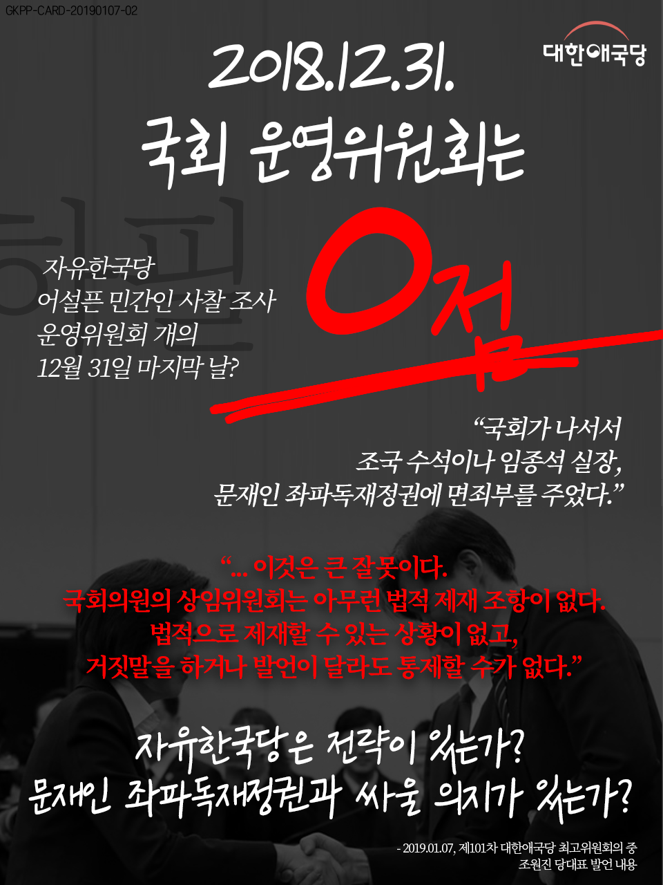 ±¹È¸°¡ ³ª¼¼ Á¶±¹ ¼ö¼®À̳ª ÀÓÁ¾¼® ½ÇÀå, ¹®ÀçÀÎ ÁÂÆÄµ¶ÀçÁ¤±Ç¿¡°Ô ¸éÁ˺θ¦ ÁÖ¾ú´Ù.