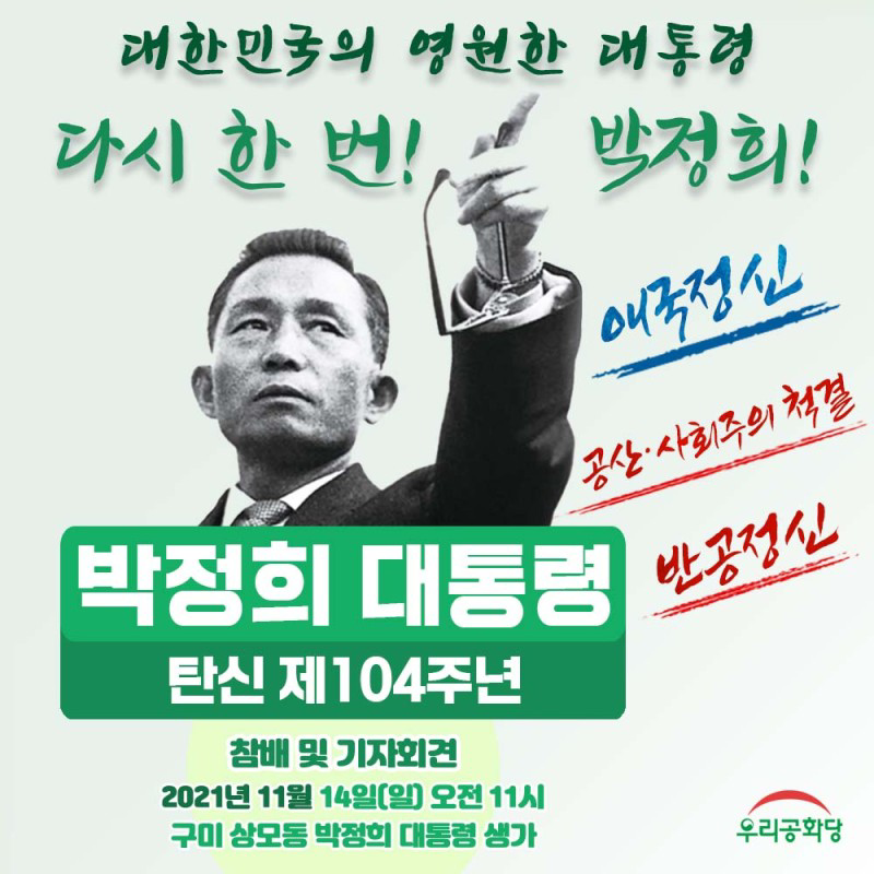 ¡á 11¿ù 14ÀÏ(ÀÏ) ¹ÚÁ¤Èñ ´ëÅë·É ź½Å 104Áֳ⠱â³ä Âü¹è ¹× ±âÀÚ...