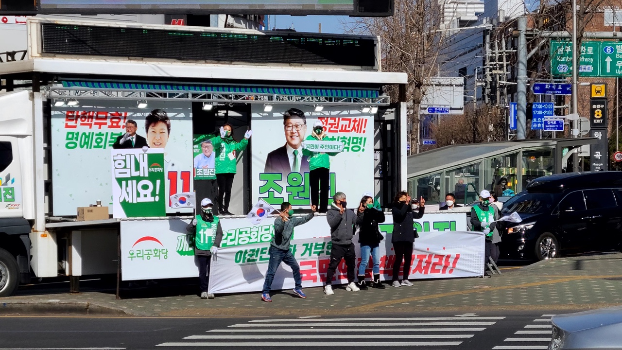¿ì¸®°øÈ´ç Á¶¿øÁø ´ëÅë·É È帴 5ÀÏ(Åä) ¿ÀÀü 10½Ã ¼¿ï Ȱ ¾Õ °Å¸®À¯¼¼¿¡¼ "Á˾ø´Â ¹Ú±ÙÇý ´ëÅë·ÉÀ» °ÅÁþÀ½ÇØ·Î ¸¶³à»ç³ÉÇß´ø °ÅÁþÃкÒÀÌ Åº»ý½ÃŲ °¡Â¥ ¿µ¿õÀÌ Áö±ÝÀÇ À±¼®¿ Èĺ¸"¶ó¸é¼ "°ÅÁþ°ú À½¸ð, Á¶ÀÛ°ú ±âȹÀ¸·Î ź»ýÇÑ À±¼®¿ Èĺ¸¿¡°Ô °øÁ¤°ú Á¤ÀǸ¦ ¿ä±¸ÇÏ´Â ÀÚü°¡ ºÒ°¡´ÉÇÏ´Ù"°í ÁöÀûÇß´Ù.