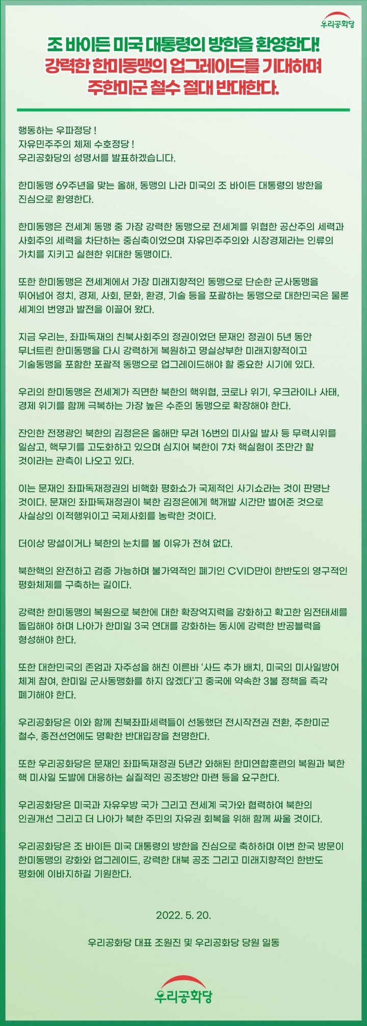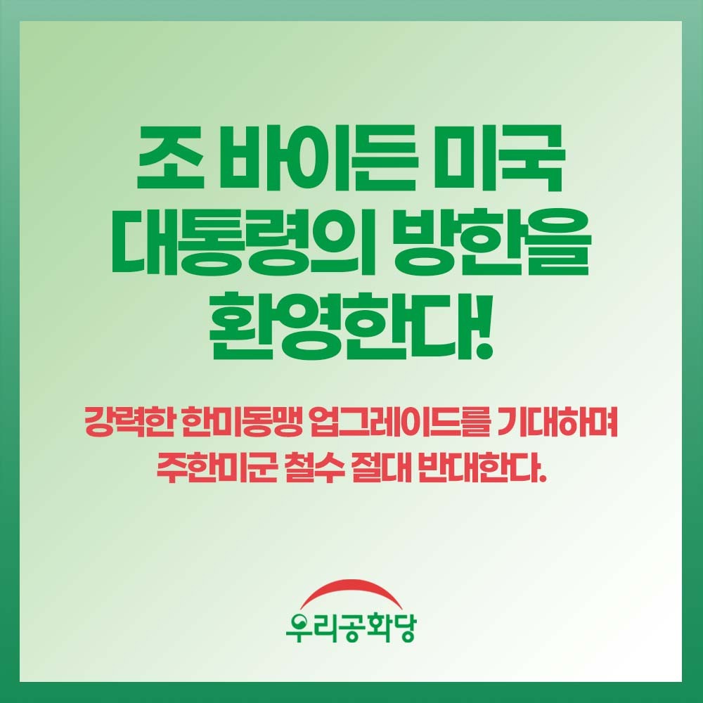 ¿ì¸®°øÈ´çÀº Á¶ ¹ÙÀÌµç ¹Ì±¹ ´ëÅë·ÉÀÇ ¹æÇÑÀ» Áø½ÉÀ¸·Î ÃàÇÏÇϸç À̹ø Çѱ¹ ¹æ¹®ÀÌ Çѹ̵¿¸ÍÀÇ °È¿Í ¾÷±×·¹À̵å, °·ÂÇÑ ´ëºÏ °øÁ¶ ±×¸®°í ¹Ì·¡ÁöÇâÀûÀÎ Çѹݵµ ÆòÈ¿¡ À̹ÙÁöÇÏ±æ ±â¿øÇÑ´Ù.