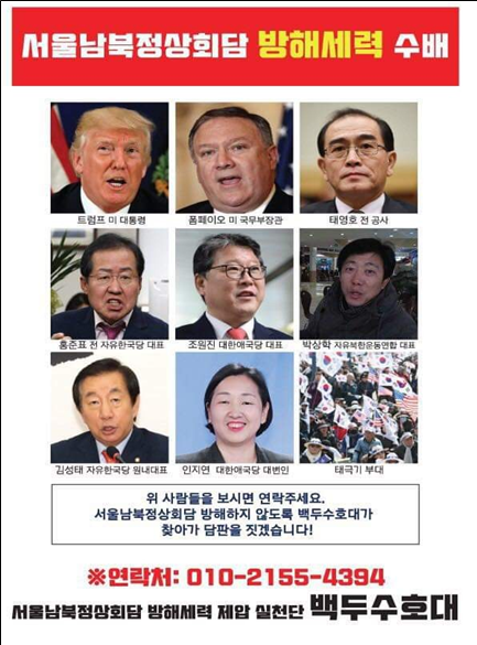 ÇÑ ÀåÀÇ Àü´ÜÁö¸¦ ÅëÇØ¼ ¹Ù·Î ¡®¹éµÎ¼öÈ£´ë¡¯¶ó´Â ¼¿ï³²ºÏÁ¤»óȸ´ã ¹æÇؼ¼·Â Á¦¾Ð ½Çõ´ÜÀÌ ±×µéÀÇ ¼Ó¼À°ú Àü·«À» µå·¯³Â´Ù. ±×µéÀº Æ®·³ÇÁ ¹Ì±¹ ´ëÅë·É, ÆûÆäÀÌ¿À ¹Ì±¹ ±¹¹«ºÎ Àå°ü, Å¿µÈ£ Àü ¿µ±¹ÁÖÀç ºÏÇÑ °ø»ç, Á¶¿øÁø ´ëÇѾֱ¹´ç ´ëÇ¥, ÀÎÁö¿¬ ´ëÇѾֱ¹´ç ¼ö¼®´ëº¯ÀÎ, ¹Ú»óÇÐ ÀÚÀ¯ºÏÇѿ¿¬ÇÕ ´ëÇ¥, È«ÁØÇ¥ Àü ÀÚÀ¯Çѱ¹´ç ´ëÇ¥, ±è¼ºÅ ÀÚÀ¯Çѱ¹´ç ¿ø³»´ëÇ¥, űر⠺δë±îÁö¸¦ ´Ù¸§ ¾Æ´Ñ ¼¿ï³²ºÏÁ¤»óȸ´ã ¡®¹æÇؼ¼·Â¡¯À̶ó°í ±ÔÁ¤ÇÏ¿© ¼ö¹èÇϰí ÀÖ´Ù.