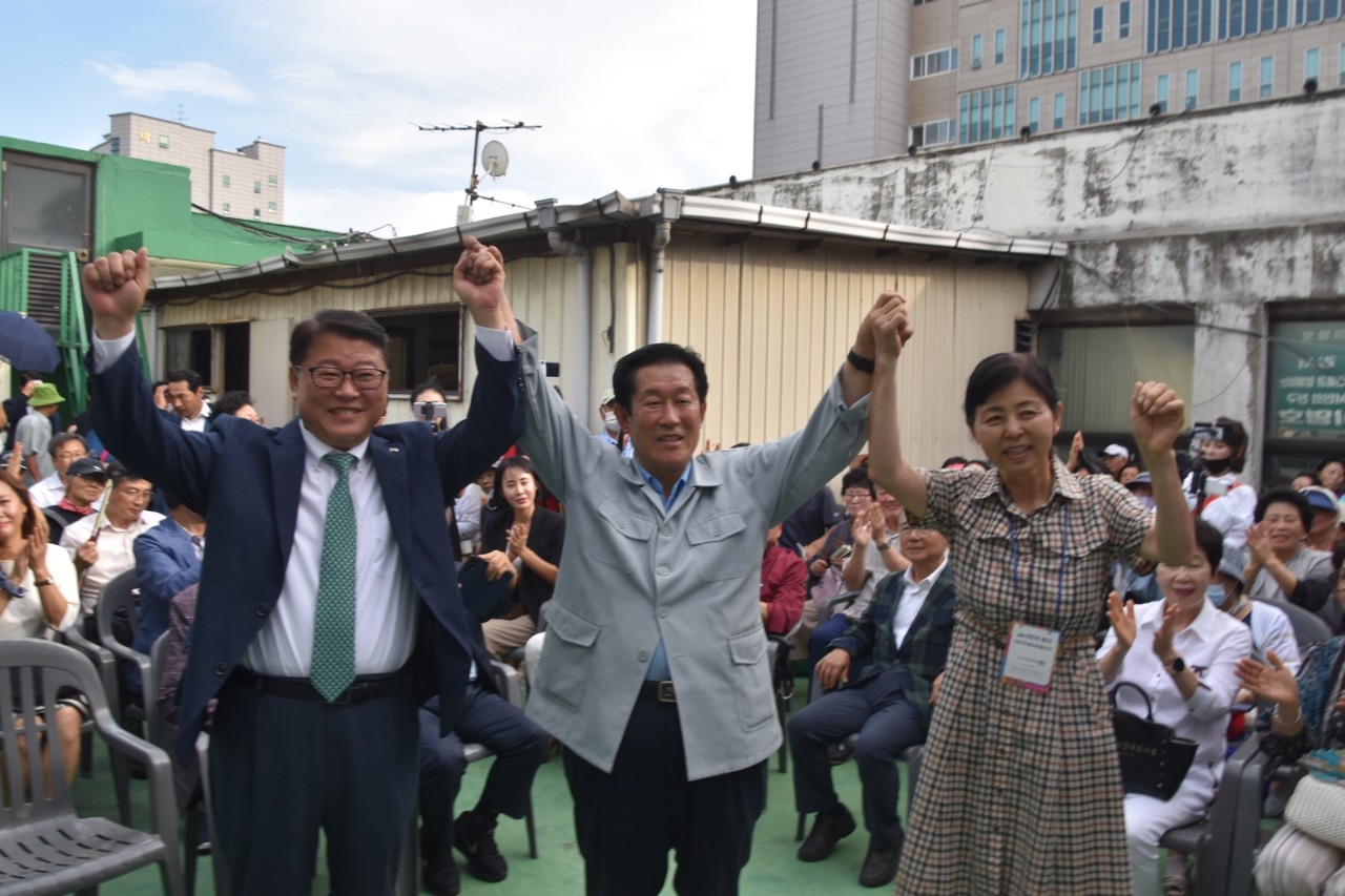 ÇÑÆí À̳¯ À̸íÈ£ °¼±¸Ã»Àå ¿¹ºÎÈĺ¸ »ç¹«½Ç °³¼Ò½Ä¿¡´Â Áø¼øÁ¤ ¼ö¼®ÃÖ°íÀ§¿øÀ» ºñ·ÔÇÏ¿© ´ç °ü°èÀÚ µî 200¿©¸íÀÌ Âü¼®ÇÏ¿© À̸íÈ£ ¿¹ºñ Èĺ¸ÀÇ ¾Ð½ÂÀ» ÀÀ¿øÇß´Ù. <³¡>