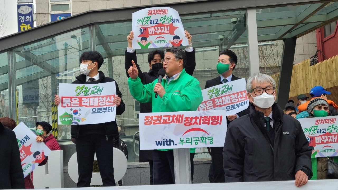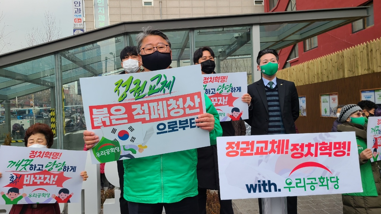 ¿ì¸®°øÈ´ç Á¶¿øÁø ´ëÅë·É È帰¡ ±¹¹ÎÀ» ¼ÓÀÌ´Â ³ª»Û Á¤Ä¡ÀÎÀ» ½ÉÆÇÇϰí À̹ø ´ë¼±À» ÅëÇØ ¡®±ú²ýÇÑ Á¤Ä¡Çõ¸íÀ» ÇÏÀÚ¡¯°í ¸»Çß´Ù.