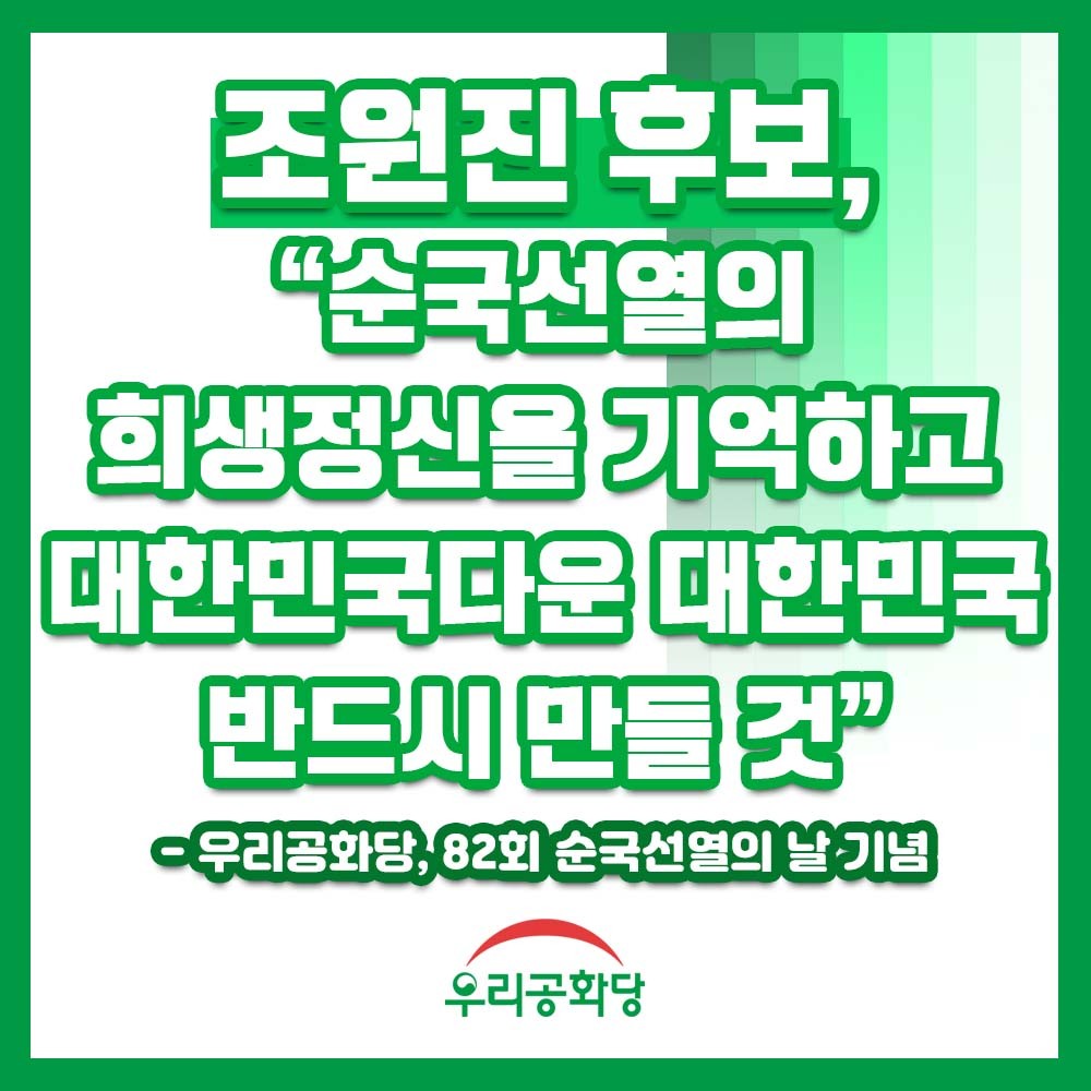 Á¶¿øÁø Èĺ¸, "¼ø±¹¼±¿ÀÇ Èñ»ýÁ¤½ÅÀ» ±â¾ïÇÏ°í ´ëÇѹα¹´Ù¿î ´ëÇѹα¹ ¹Ýµå½Ã ¸¸µé °Í"