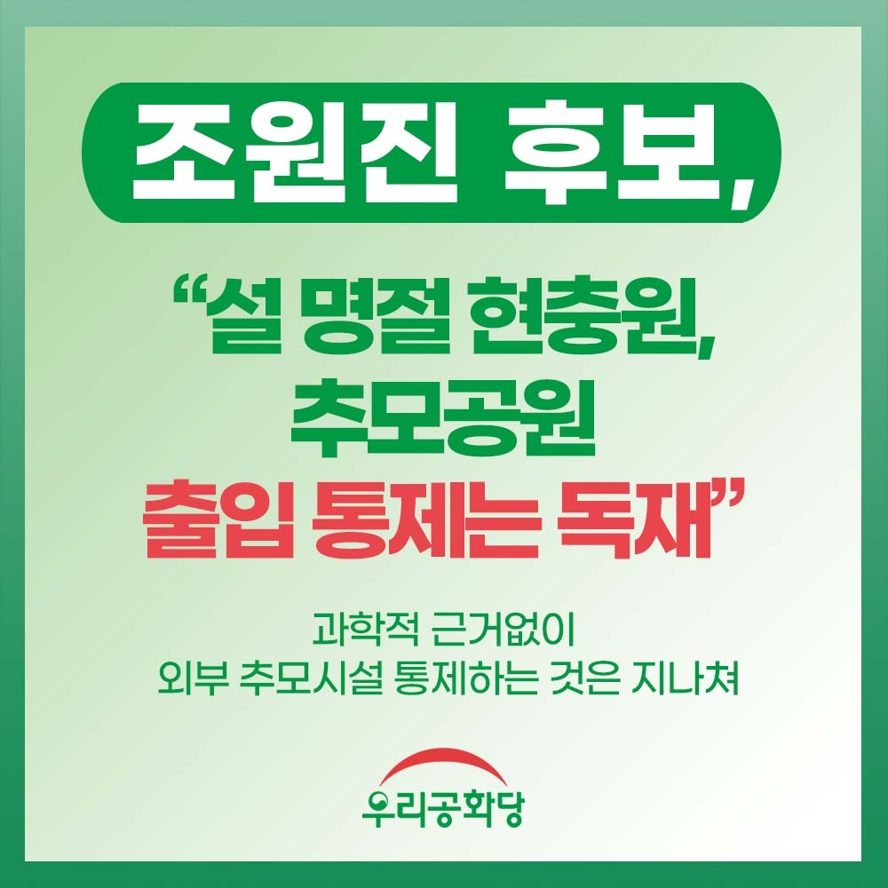 ¿ì¸®°øÈ´ç Á¶¿øÁø ´ëÅë·É È帰¡ ¼³¸íÀý ¿¬ÈÞ¿¡ ±¹¸³ÇöÃæ¿ø µî Ã߸ð½Ã¼³ ½Ç¿Ü Âü¹è¸¦ ÅëÁ¦ÇÏ´Â °ÍÀº ¸í¹éÇÑ Äڷγª µ¶Àç¶ó°í ºñÆÇÇß´Ù.