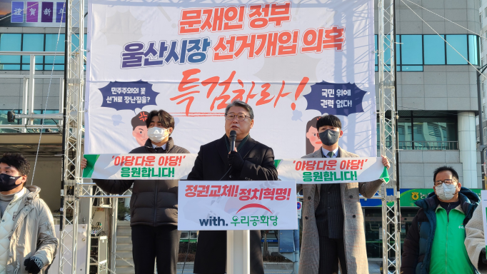 ¿ì¸®°øÈ´ç Á¶¿øÁø ´ëÅë·É È帴 19ÀÏ(¼ö) ¿ÀÀü 10½Ã, ¿ï»ê½Ãû ¾Õ ±âÀÚȸ°ß¿¡¼ "¿ï»ê½ÃÀå ºÎÁ¤¼±°Å »ç°ÇÀº ÀÚÀ¯¹ÎÁÖÁÖÀÇüÁ¦ÀÇ ±Ù°£ÀÎ »ï±ÇºÐ¸³À» ¹«·ÂÈÇÏ´Â ¹®ÀçÀÎ Á¤±ÇÀÇ ºÓÀºÀûÆó"¶ó¸é¼ "µµ´ëü ¾î´À³ª¶ó¿¡¼ ´ëÅë·ÉÀÇ Ä£±¸¸¦ ´ç¼±½Ã۱â À§ÇØ Ã»¿Í´ë¿Í Á¤ºÎºÎó°¡ ³ª¼´À³Ä"°í ¸»Çß´Ù.