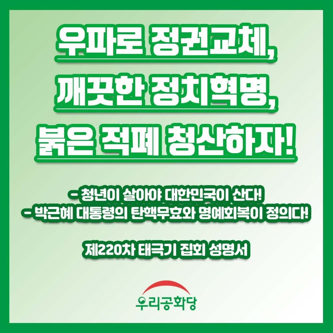 ¿ìÆÄ·Î Á¤±Ç±³Ã¼, ±ú²ýÇÑ Á¤Ä¡Çõ¸í, ºÓÀº ÀûÆó û»êÇÏÀÚ !