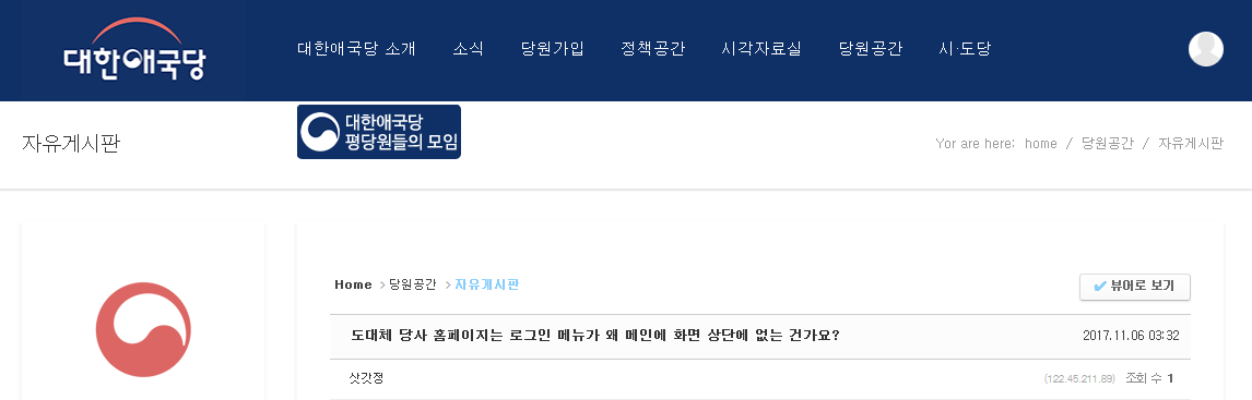 Á¦¹ß ·Î±×ÀÎ ¸Þ´ººÎÅÍ ¸¸µé¾î¼ Æò´ç¿øµéÀÌ ¸ðµÎ ´ëÇѾֱ¹´ç ȨÆäÀÌÁö¸¦ ÀÌ¿ëÇϵµ·Ï ÇØÁÖ¼¼¿ä.