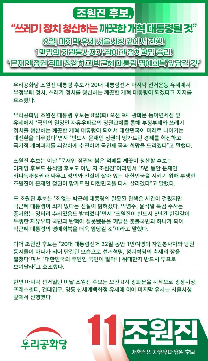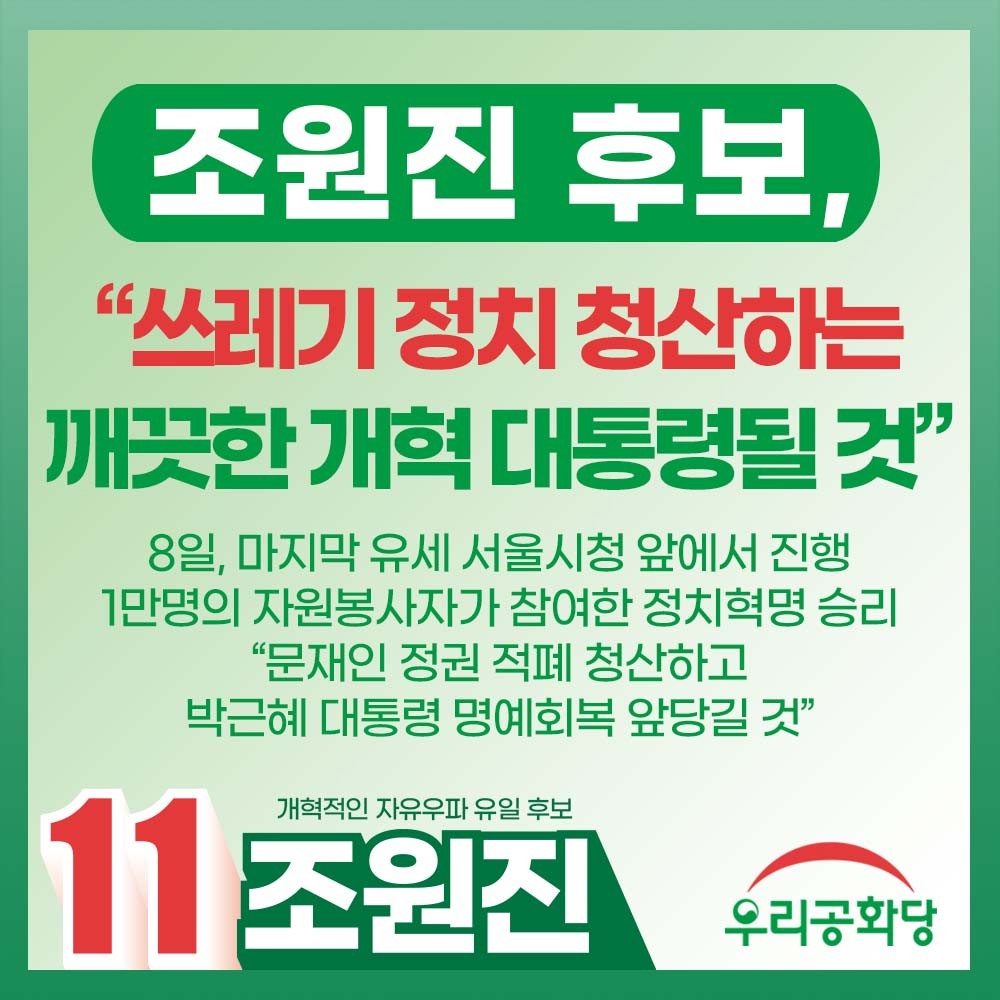 3/1(È) [¼¿ï ÃÑÁý°á À¯¼¼] 11¹ø Á¶¿øÁø ¿ì¸®°øÈ´ç ´ëÅë·É Èĺ¸ ÀÏÁ¤