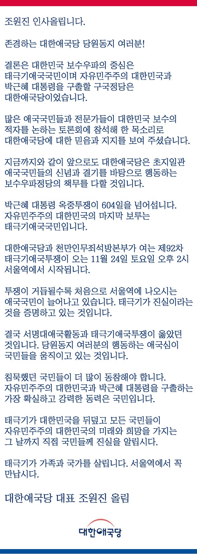 ´ëȸ»ç : À¯ÁøÀ¯(Àü ¹ÌÁÖÇÑÀÎȸ ȸÀå), ´ëÇѹα¹ ¿ìÆÄ Åë°·Î ¹Ù²Ù°í, À§ÀåÀ§¼±º¸¼ö ¾Æ¿ô, ´ºº¸¼ö¿ìÆÄ½Ã´ë!