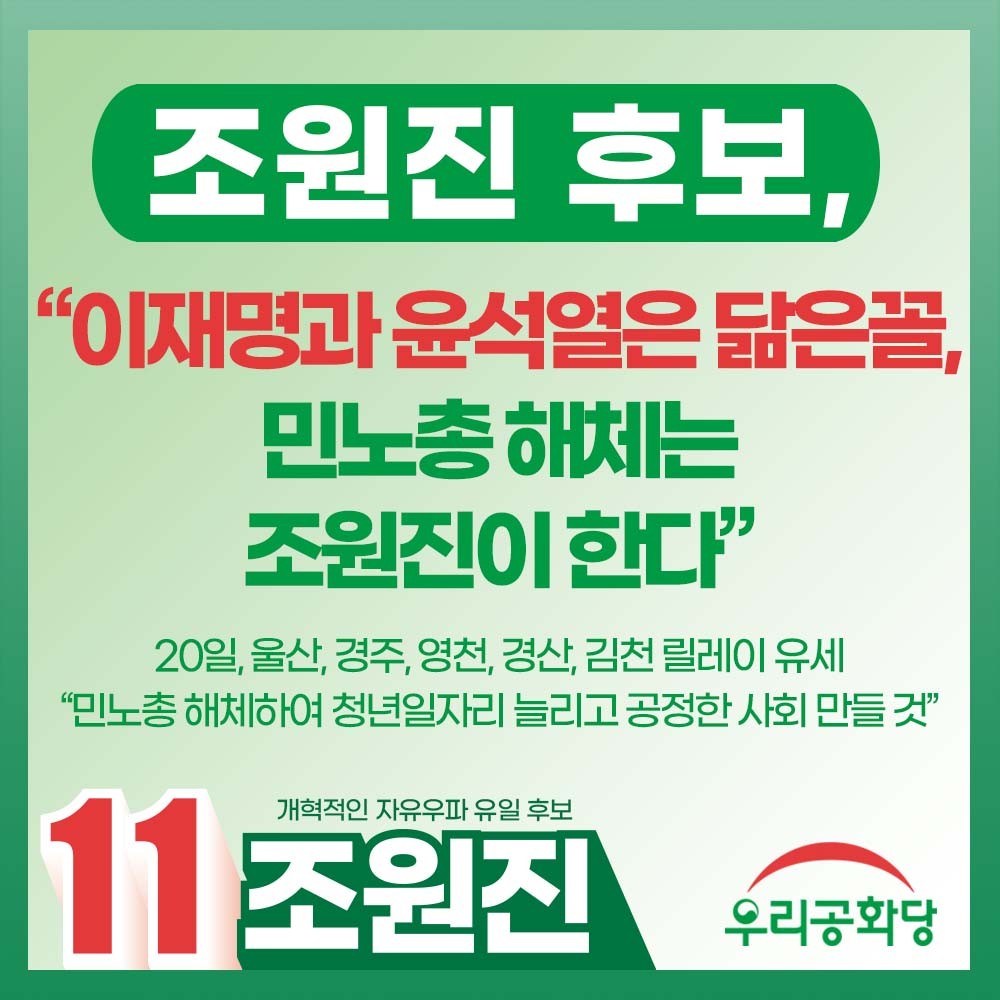 2/22(È) [´ëÀü¡¤¼¼Á¾] 11¹ø Á¶¿øÁø ¿ì¸®°øÈ´ç ´ëÅë·É Èĺ¸ ÀÏÁ¤