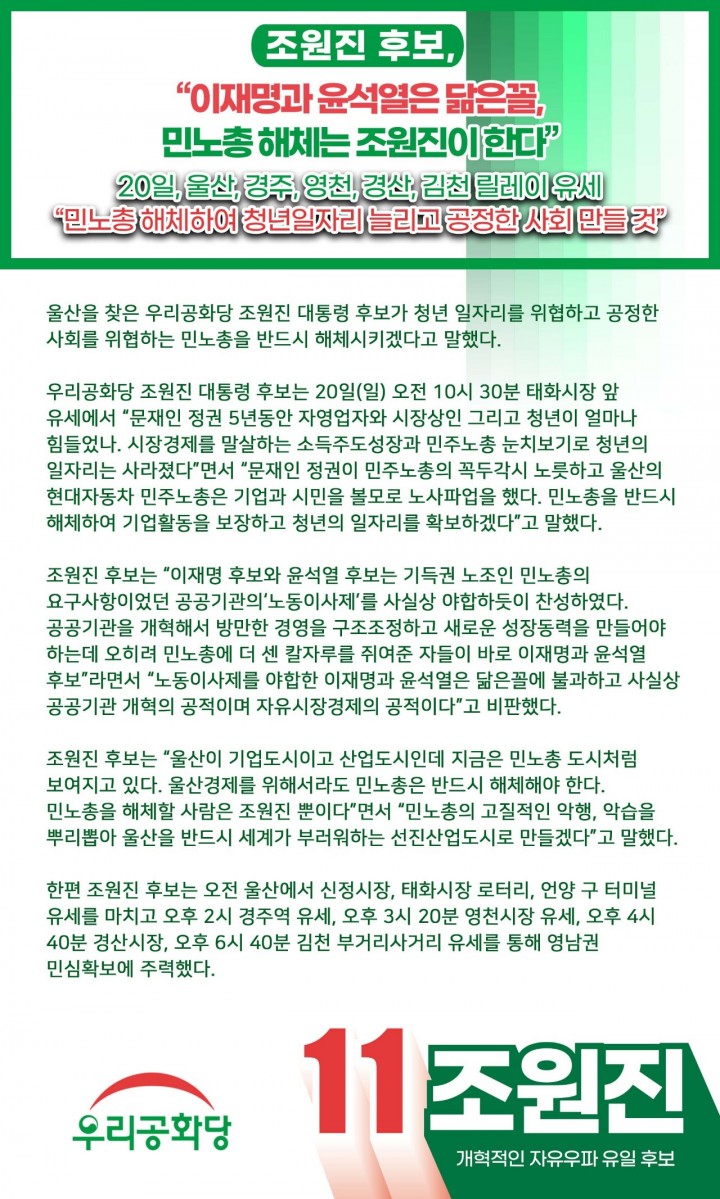 <Àü±¹ À¯¼¼ ÀÏÁ¤> 11¹ø Á¶¿øÁø ¿ì¸®°øÈ´ç ´ëÅë·É Èĺ¸