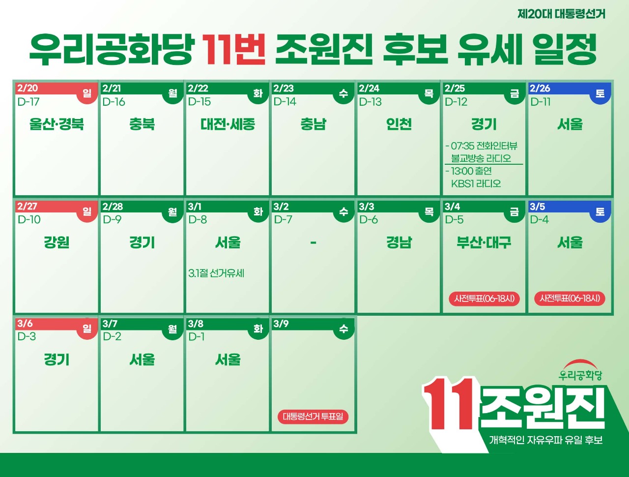2/23(¼ö) [Ãæ³²] 11¹ø Á¶¿øÁø ¿ì¸®°øÈ´ç ´ëÅë·É Èĺ¸ ÀÏÁ¤