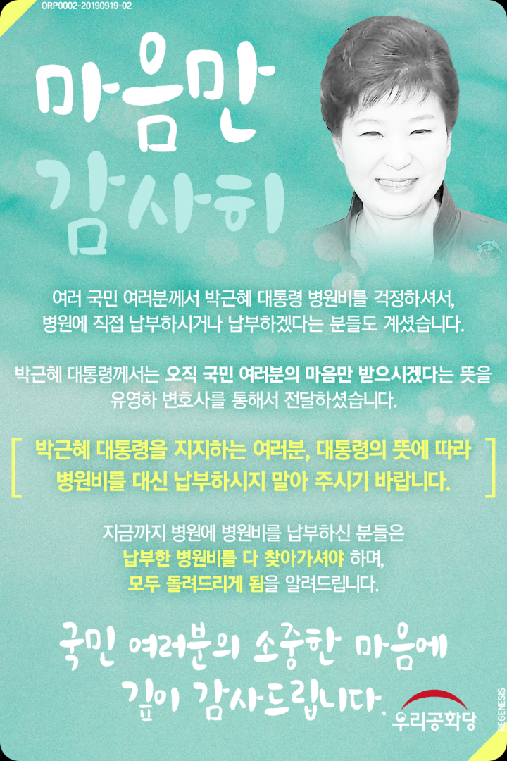 [ÆíÁö ÁÖ¼Ò ¾È³»] ¹Ú±ÙÇý ´ëÅë·É ÄèÀ¯±â¿ø ÆíÁö´Â ¼¿ï±¸Ä¡¼Ò·Î º¸³»Áֽøé, º´¿øÀ¸·Î Àü´ÞµË´Ï´Ù