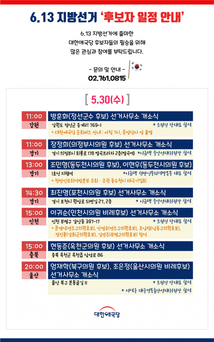 <Á¶¿øÁø ´ç´ëÇ¥ ÀÏÁ¤> 10¿ù 24ÀÏ(Åä) ¿ÀÀü 10½Ã ¿ì¸®°øÈ´ç ¹ÚÁ¤Èñ ´ëÅë·É ¼°Å Á¦41Áֱ⠱¤È¹® Ã߸ðºÐÇâ¼Ò Âü¹è