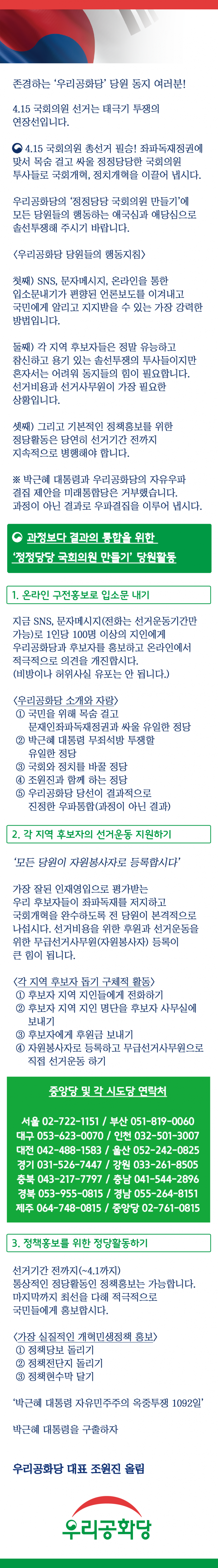 4.15 ±¹È¸ÀÇ¿ø ¼±°Å´Â űرâ ÅõÀïÀÇ ¿¬Àå¼±ÀÔ´Ï´Ù_¿ì¸®°øÈ´ç ´ëÇ¥ Á¶¿øÁø