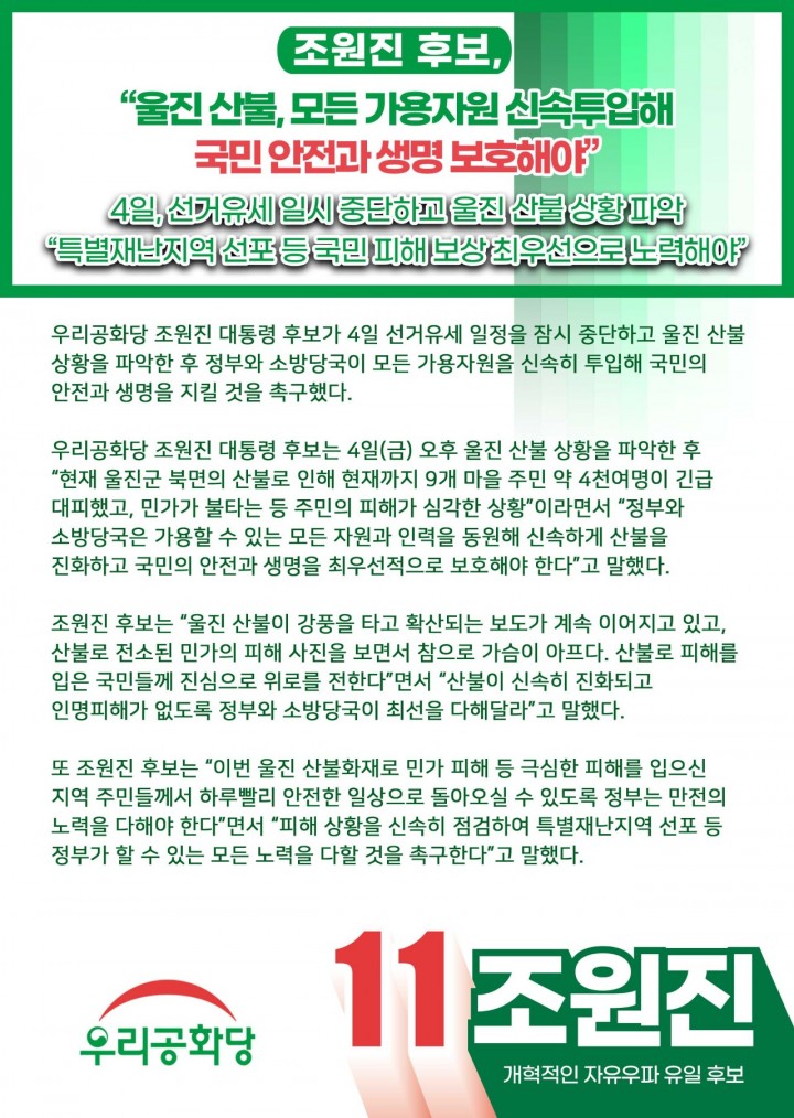 3/6(ÀÏ) [´ëÀü¡¤ÃæÃ»¡¤ÀüºÏ] 11¹ø Á¶¿øÁø Èĺ¸ À¯¼¼ ÀÏÁ¤ (D-3)
