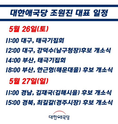 Á¶¿øÁø ´ëÇ¥, 5¿ù 28ÀÏ(¿ù) Àü±¹ Åõ¾î ÀÏÁ¤