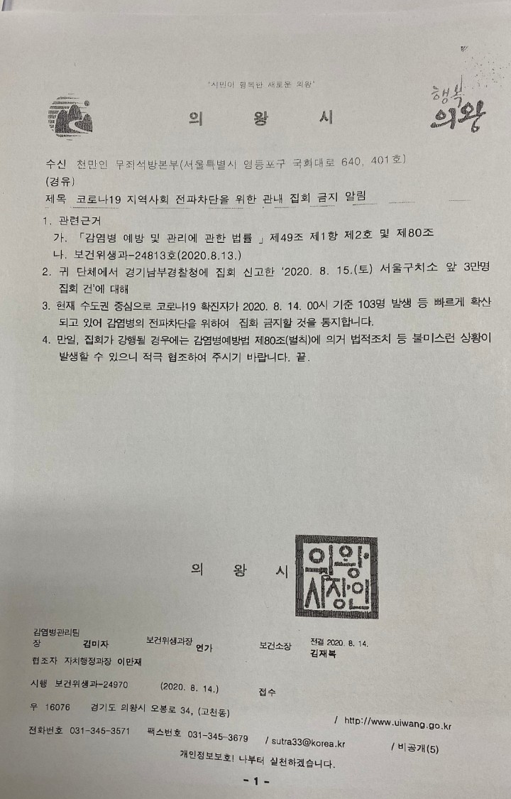 ³»ÀÏ ¿ÀÈÄ16½Ã ¼Ã»´ë Áýȸ´Â ÀǿսÃÀÇ ÇàÁ¤¸í·É(2020.8.14 19:30)¿¡