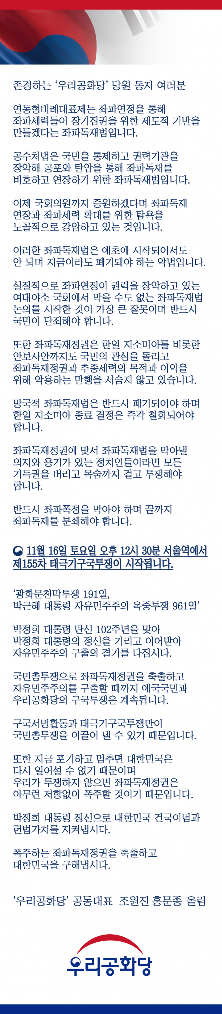 #¿ì¸®°øÈ´ç #űرâÁýȸ #¹®ÀçÀÎÅðÁø #Á¶±¹±¸¼Ó #ÁÂÆÄµ¶ÀçÁ¤±Ç #Á¶±¹»çÅð #°ø¼öó #¼ö»ç±Ç #ÁÂÆÄµ¶ÀçÁ¤±Ç