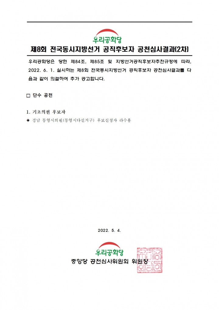 Á¦8ȸ_Àü±¹µ¿½ÃÁö¹æ¼±°Å_°øÁ÷Èĺ¸ÀÚ_Ãßõ_½É»ç°á°ú(2Â÷)001.jpg