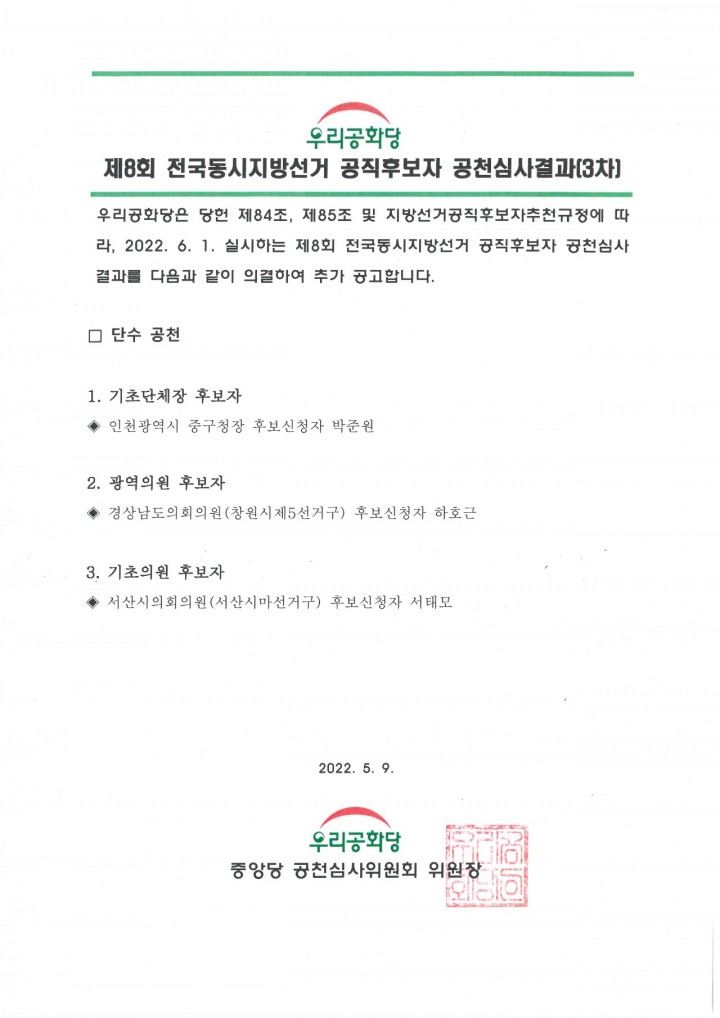 ¿ì¸®°øÈ´ç Á¦8ȸ Àü±¹µ¿½ÃÁö¹æ¼±°Å Èĺ¸ÀÚ Ãß°¡ ¸ðÁý °ø°í