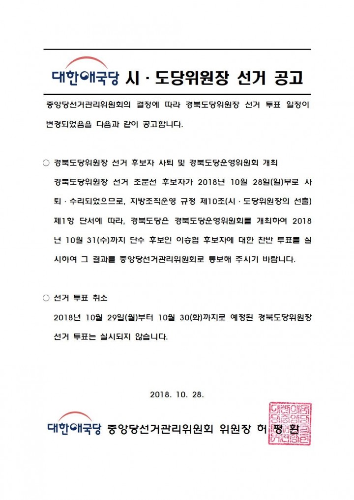 ´ëÇѾֱ¹´ç ½Ãµµ´ç À§¿øÀå ¼±°Å È帱âÈ£ °øÁö (2017.11.05)
