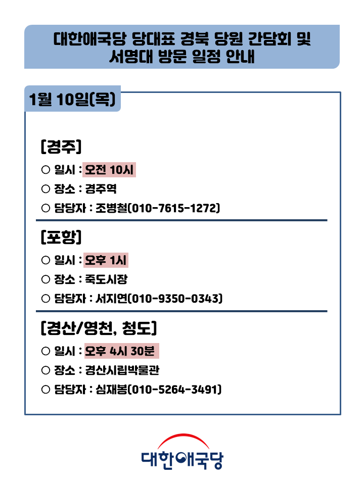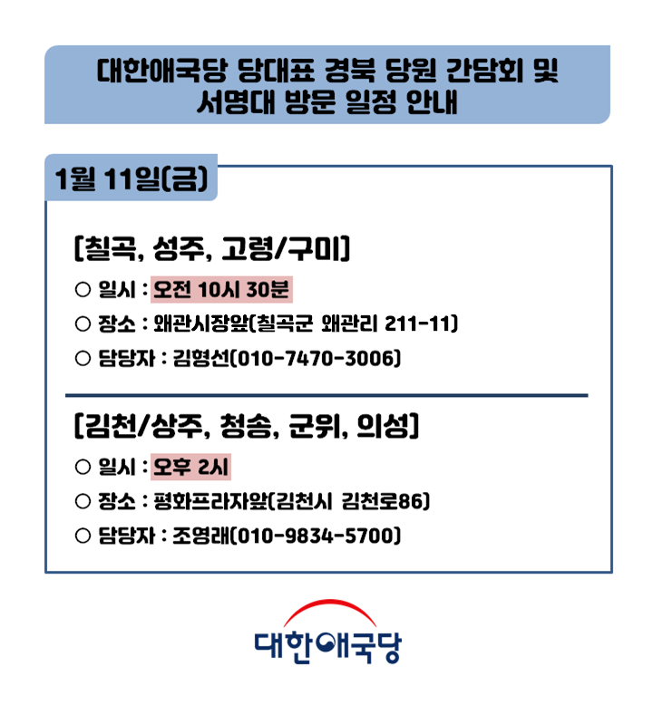 ´ëÇѾֱ¹´ç ´ç´ëÇ¥ °æºÏ ´ç¿ø °£´ãȸ ¹× ¼¸í´ë ¹æ¹® ÀÏÁ¤ ¾È³»(1¿ù 17ÀÏ~18ÀÏ)