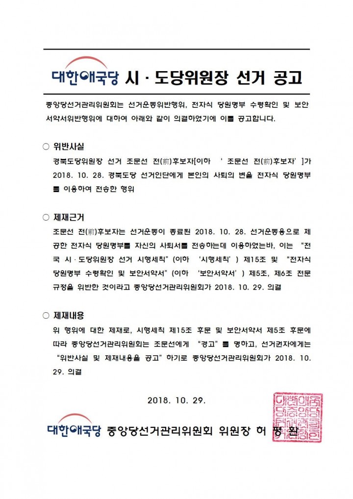 ´ëÇѾֱ¹´ç ½Ãµµ´çÀ§¿øÀå¼±°Å ½ÅûÀÚ·á