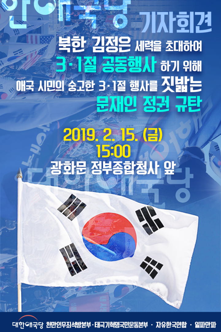 ¡Ø ¼öÁ¤: °øµ¿ÁÖÃÖ ´ëÇѾֱ¹´ç, õ¸¸Àι«Á˼®¹æº»ºÎ, űرâÇõ¸í±¹¹Î¿îµ¿º»ºÎ, ÀÚÀ¯Çѱ¹¿¬ÇÕ, ÀÏÆÄ¸¸ÆÄÀÔ´Ï´Ù