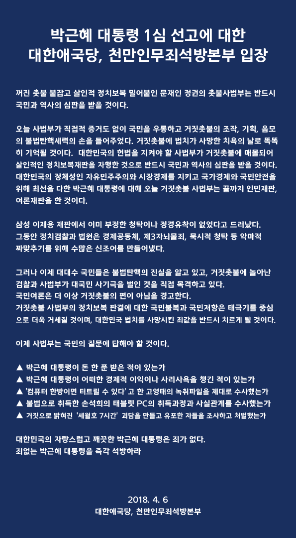 ¹Ú±ÙÇý ´ëÅë·ÉÀÇ ¶æ! ´ëÇѾֱ¹´ç Áß½ÉÀ¸·Î ¹¶ÃÄ ´ëÇѹα¹À» ÁöÄÑ´Þ¶ó