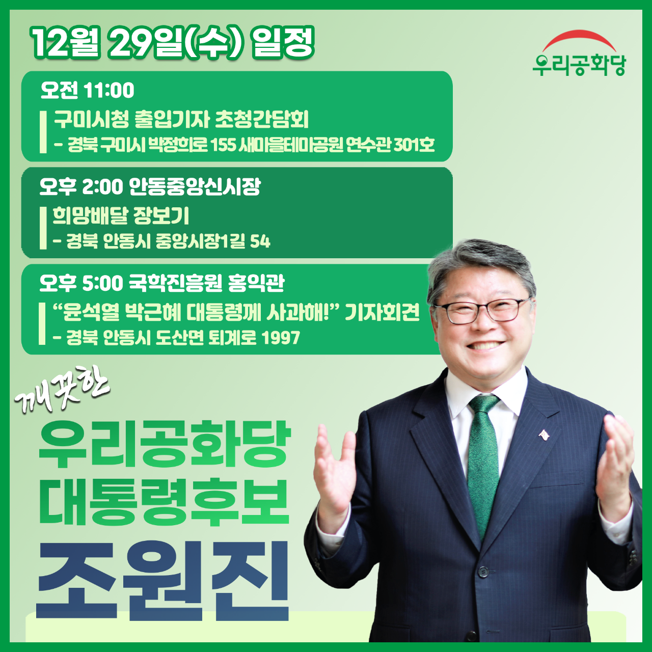 12/30(¸ñ) Á¶¿øÁø ¿ì¸®°øÈ´ç ´ëÅë·É Èĺ¸ ÀÏÁ¤