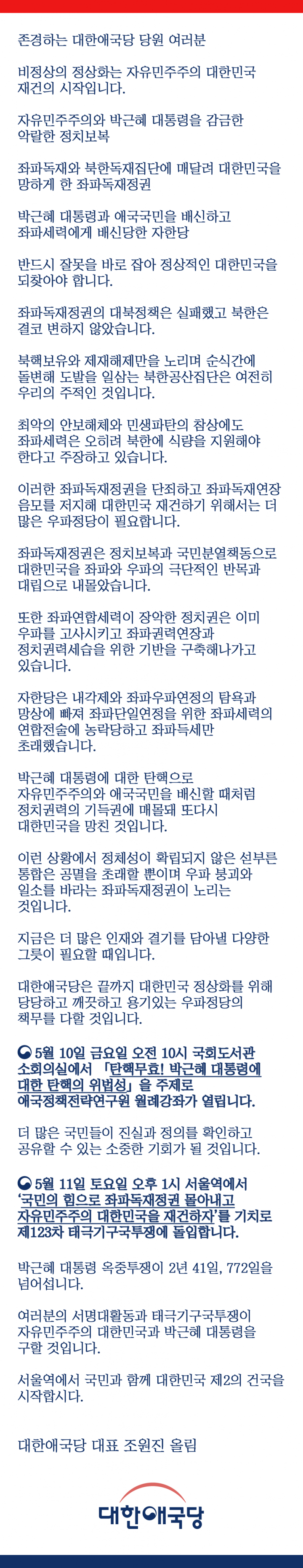 »ó½Ç°ú ºÐ³ëÀÇ ½Ã´ë¸¦ ³Ñ¾î ±ú²ýÇÏ°í ´ç´çÇÑ ´ëÇѹα¹ ±¹¹Î°ú ÇÔ²² ½ÇÇöÇϰڽÀ´Ï´Ù. 11¹ø Á¶¿øÁø
