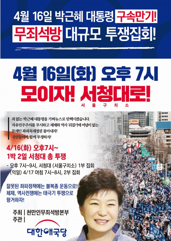 À̹ø 4.13(Åä) űرâÁýȸ´Â ¹Ú±ÙÇý´ëÅë·É´ÔÀÇ ±¸¼Ó¸¸±âÃÑ·ÂÀúÇ× ÅõÀïÀ¸·Î¼ À̸¦ ±¹¹Î²² ¾Ë¸± ¼ö ÀÖ´Â Àü´ÜÁö¸¦ ¹èÆ÷ÇϰíÀÚ ÇÕ´Ï´Ù.