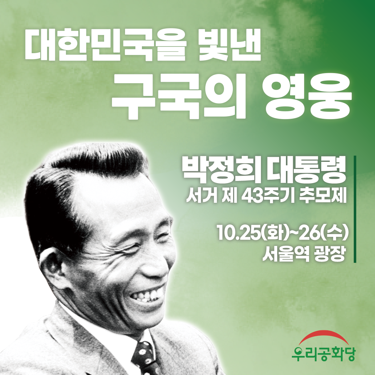 - ¿ÀÀü 9:00 - ¿ÀÈÄ 6:00 ¹ÚÁ¤Èñ´ëÅë·É ¼°Å 43ÁÖ±â Ã߸ðÇà»ç(¼¿ï¿ª ±¤Àå)