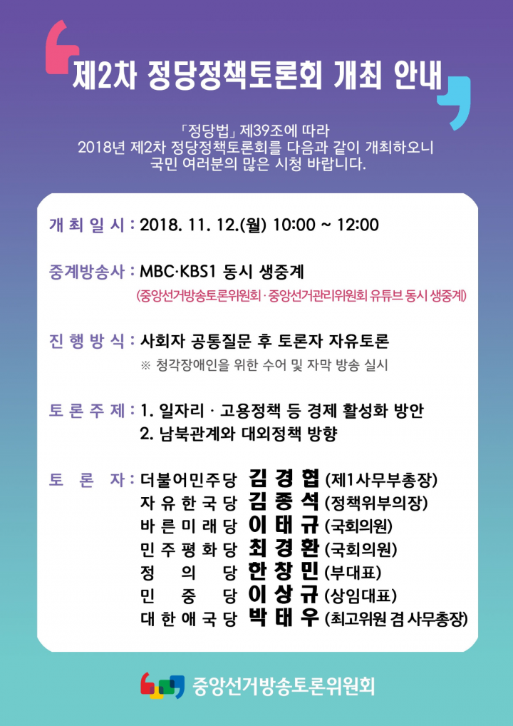 2018³â Á¦2Â÷ Á¤´çÁ¤Ã¥Åä·Ðȸ¸¦ ´ÙÀ½°ú °°ÀÌ °³ÃÖÇÏ¿À´Ï ¸¹Àº °ü½É°ú ½Ãû ¹Ù¶ø´Ï´Ù.