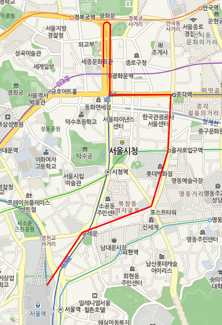 ¡Û ÇàÁø : ¼¿ï¿ª ±¤Àå - ¼þ·Ê¹® - Çѱ¹ÀºÇà»ç°Å¸® - À»Áö·ÎÀÔ±¸¿ª - Á¾°¢¿ª - ¼¼Á¾»ç°Å¸® - ±¤È¹® - ¼¼Á¾¹®Èȸ°ü ¾Õ
