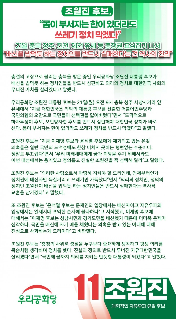 Á¶¿øÁø Èĺ¸, ¹ÎÃÊÀÇ Á¤Ä¡Çõ¸í, ¼±°ÅÇõ¸í ½ÃÀÛ, ¾²·¹±â Á¤Ä¡ ¸ô¾Æ³»ÀÚ(220219)
