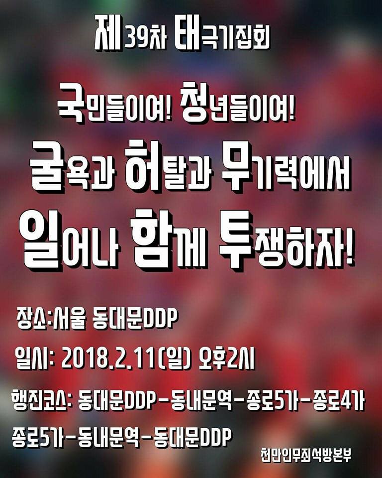 ¿¬ »ç : Á¶¿øÁø(´ëÇѾֱ¹´ç´ëÇ¥), ¹Ú±ÙÇý´ëÅë·É ±¸ÃâÇÏ¿© ºÏÁø¸ê°øÀÚÀ¯ÆòÈÅëÀÏ ¼ºÃëÇÏÀÚ!