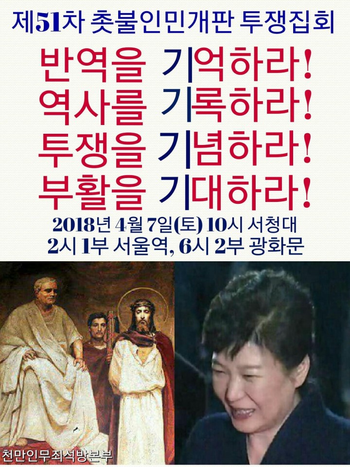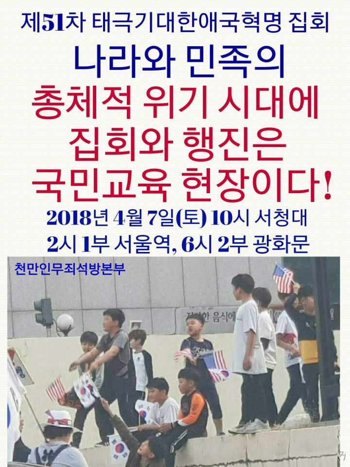 2018³â 4¿ù 7ÀÏ(Åä) 10½Ã ¼Ã»´ë, 2½Ã 1ºÎ ¼¿ï¿ª, 3:30 ÇàÁø, 5½Ã 2ºÎ ±¤È¹®(¼¼Á¾¹®Èȸ°ü)