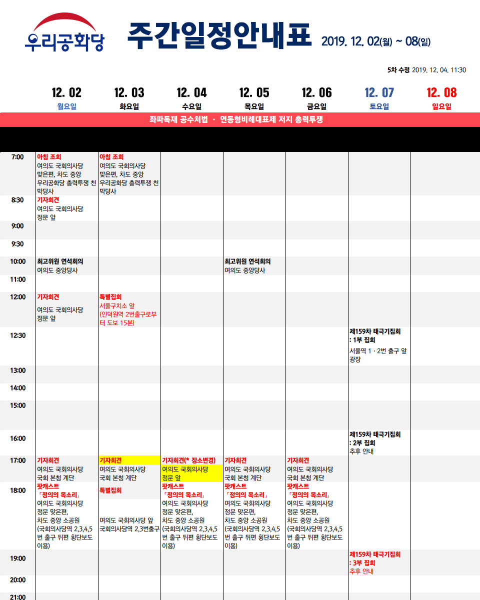 < 2019³â 12¿ù 5ÀÏ(¸ñ) ¿ì¸®°øÈ´ç ÁÖ¿ä ÀÏÁ¤ >
