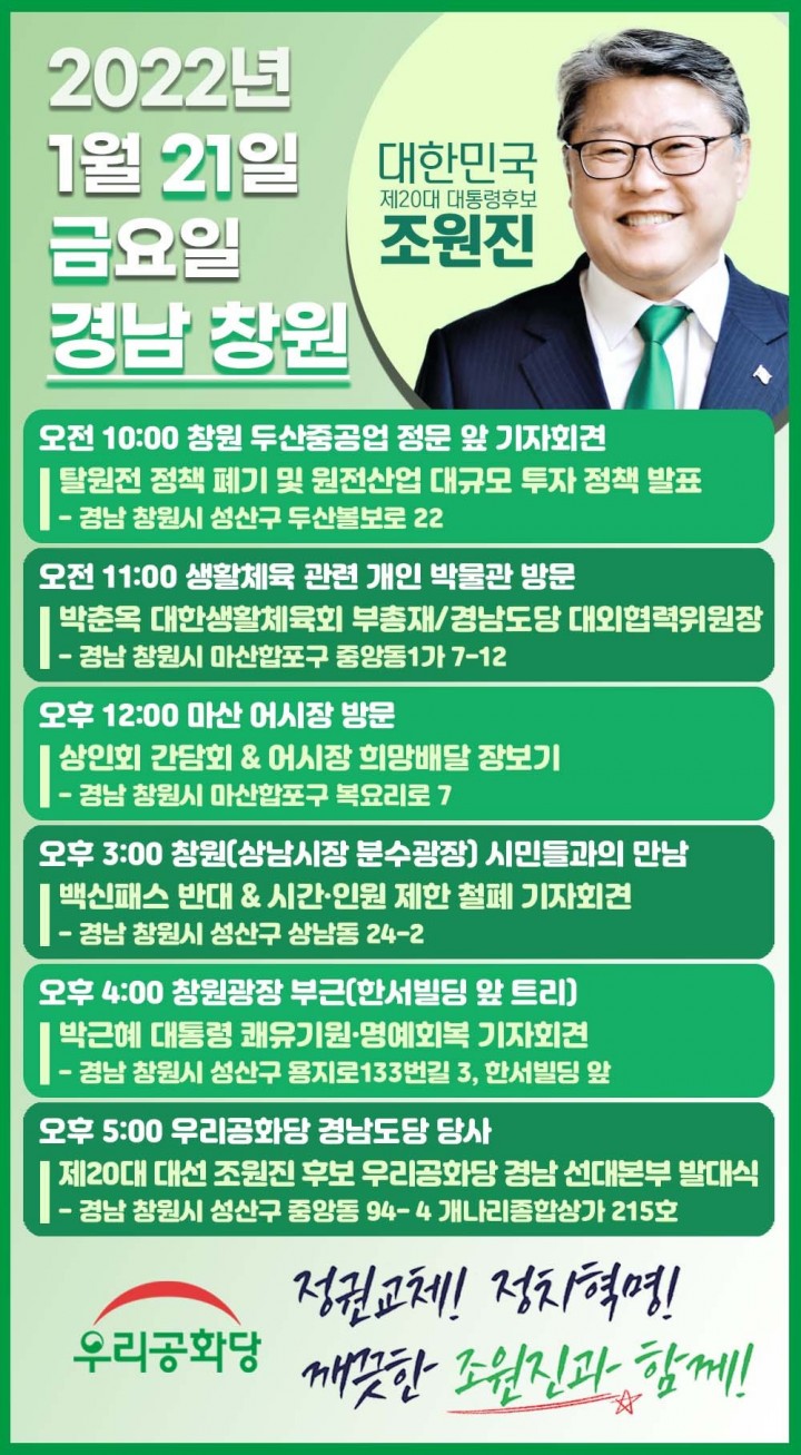 1/21(±Ý) Á¶¿øÁø ¿ì¸®°øÈ´ç ´ëÅë·É Èĺ¸ ÀÏÁ¤(°æ³² â¿ø)