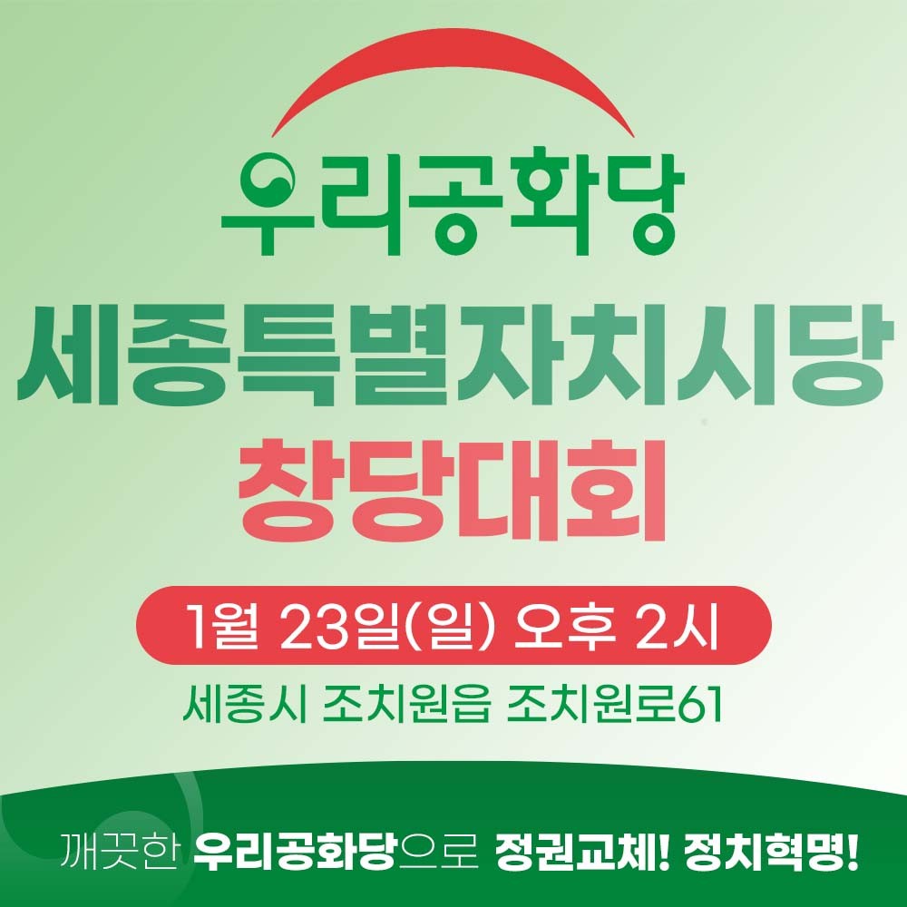 1/23(ÀÏ) ¿ì¸®°øÈ´ç ¼¼Á¾Æ¯º°ÀÚÄ¡½Ã´ç â´ç´ëȸ ¾È³»