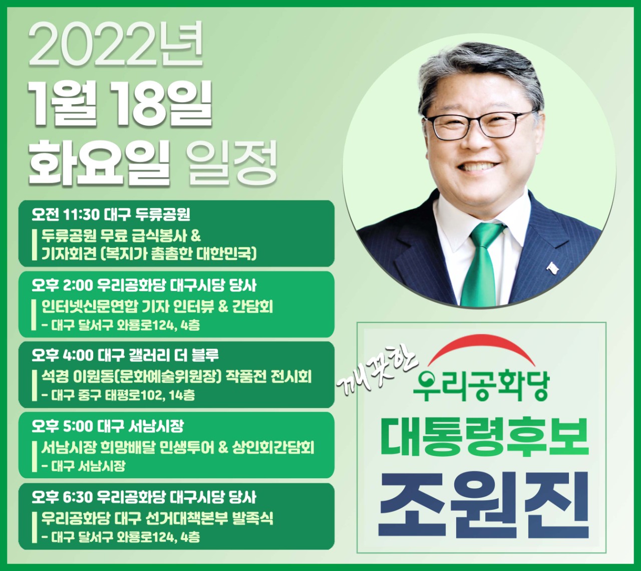 1/18(È) Á¶¿øÁø ¿ì¸®°øÈ´ç ´ëÅë·É Èĺ¸ ÀÏÁ¤
