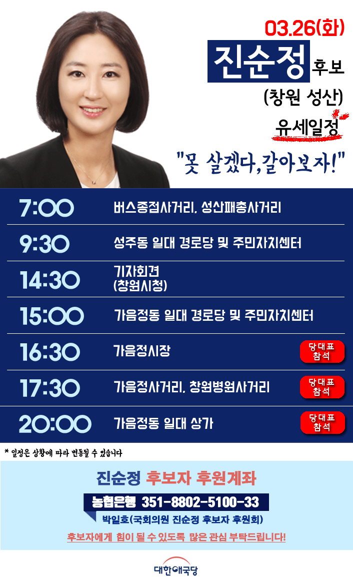 <19.03.26(È) ´ëÇѾֱ¹´ç Áø¼øÁ¤ Èĺ¸ÀÚ(â¿ø ¼º»ê) À¯¼¼ÀÏÁ¤>