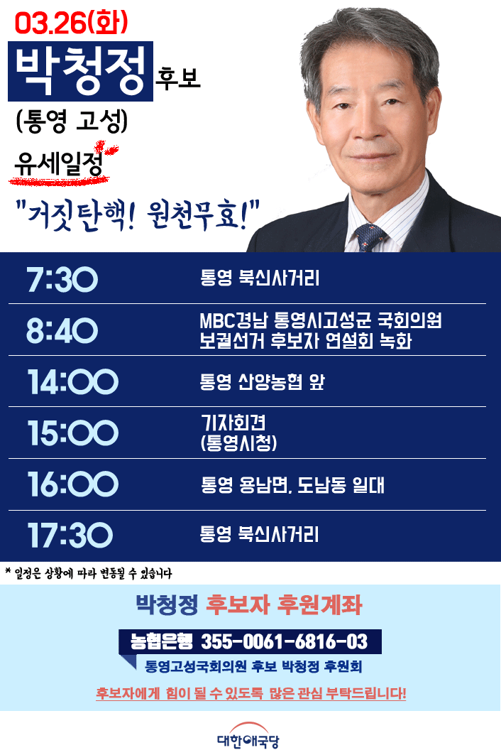 <19.03.26(È) ´ëÇѾֱ¹´ç ¹ÚûÁ¤ Èĺ¸ÀÚ(Å뿵 °í¼º) À¯¼¼ÀÏÁ¤>