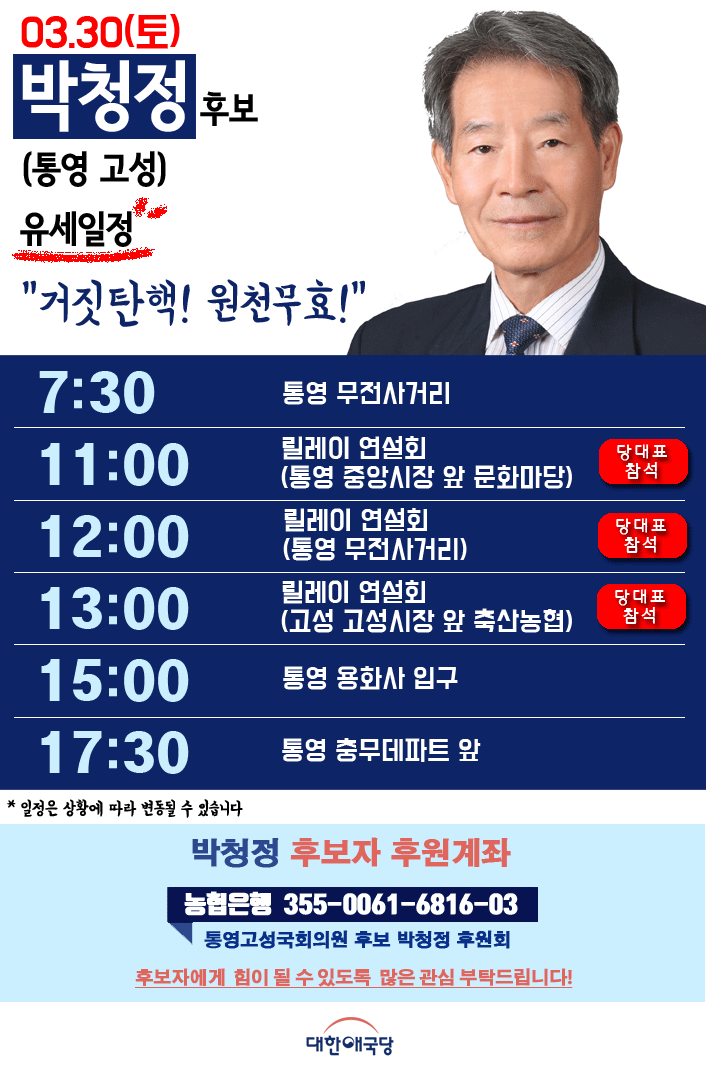 <19.03.30(Åä) ´ëÇѾֱ¹´ç ¹ÚûÁ¤ Èĺ¸ÀÚ(Å뿵 °í¼º) À¯¼¼ÀÏÁ¤>
