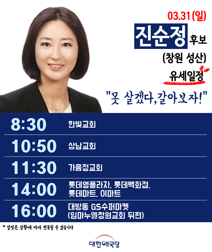 <19.03.31(ÀÏ) ´ëÇѾֱ¹´ç Áø¼øÁ¤ Èĺ¸ÀÚ(â¿ø ¼º»ê) À¯¼¼ÀÏÁ¤>