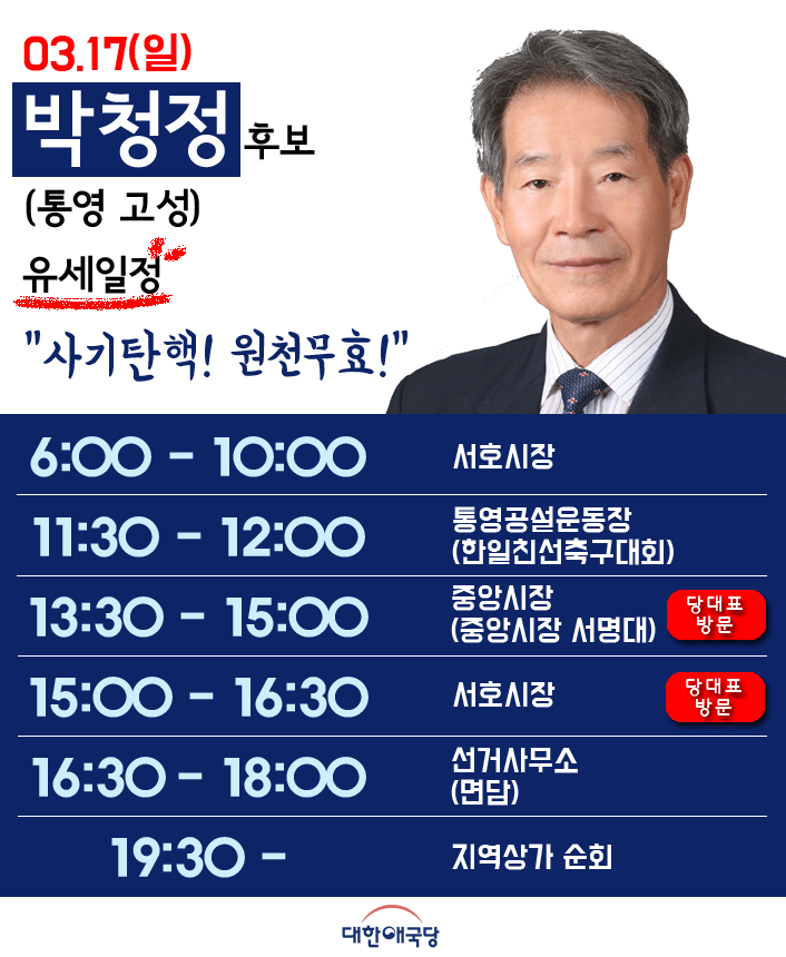 19.03.17(ÀÏ) ´ëÇѾֱ¹´ç ¹ÚûÁ¤ Èĺ¸ÀÚ(Å뿵 °í¼º) À¯¼¼ÀÏÁ¤